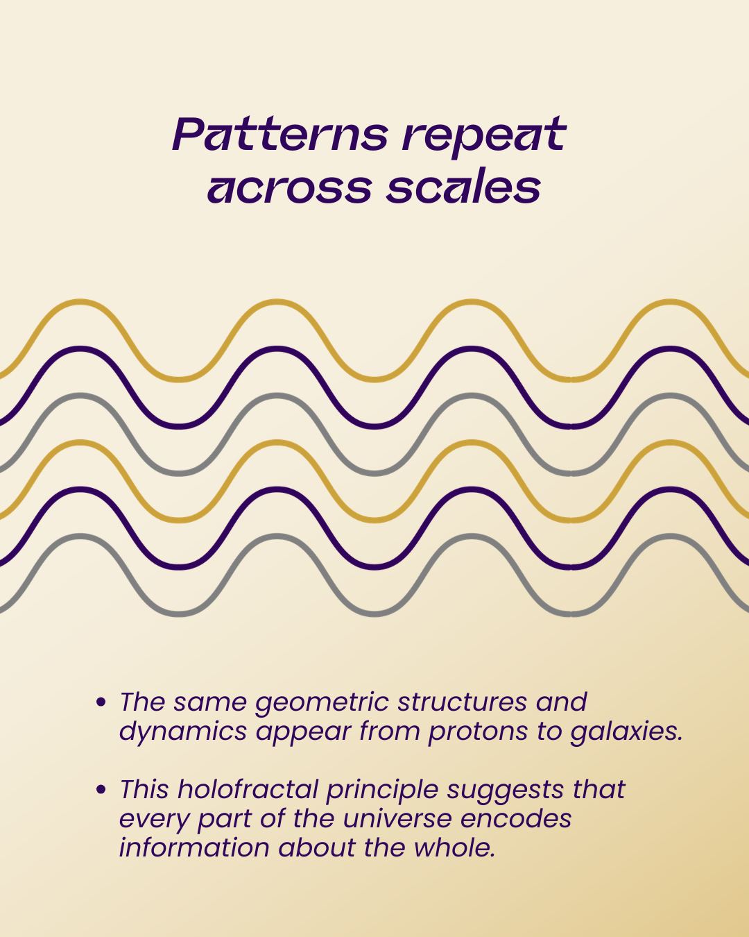 Fields within fields, patterns with patterns, waves within waves, aware and sentient. Marcus Aurelius rightly stated, that, “What we do now echoes in eternity.”
